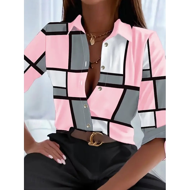 More information about Women's Shirt Blouse Plaid Polka Dot Casual Long Sleeve Shirt Collar Regular Tops Work Daily Buttons Print Black White Pink Blue Khaki Spring Fall Winter