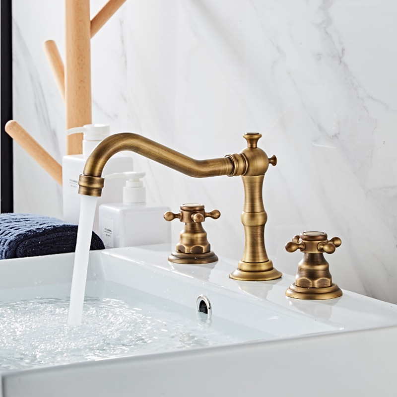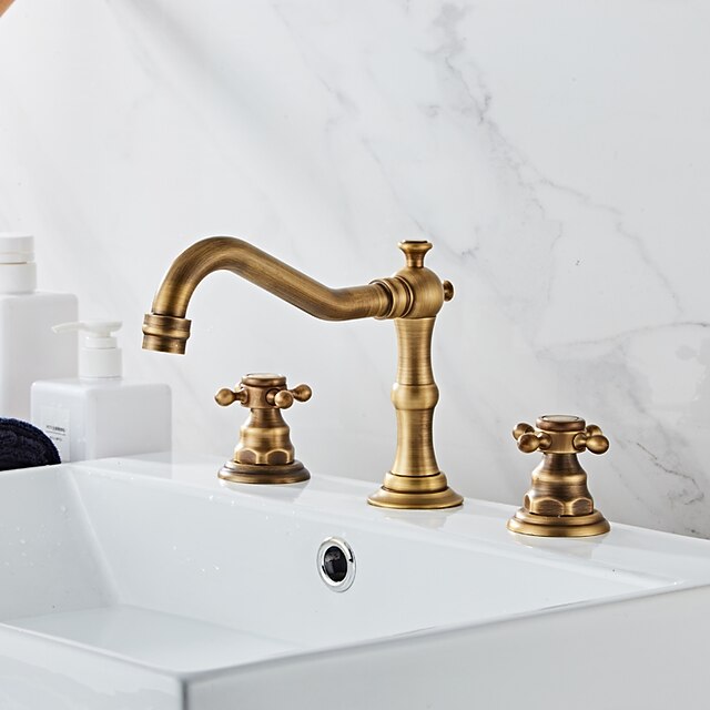 More information about Bathtub Faucet,Antique Brass Widespread Roman Tub Two Handles Three Holes Bath Taps wiith Hot and Cold Switch