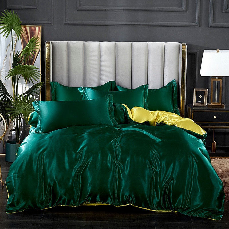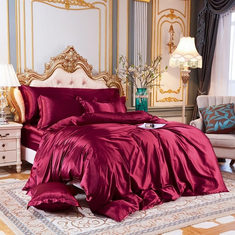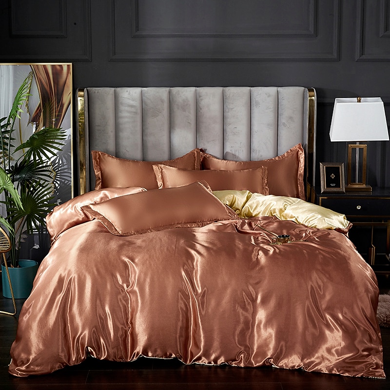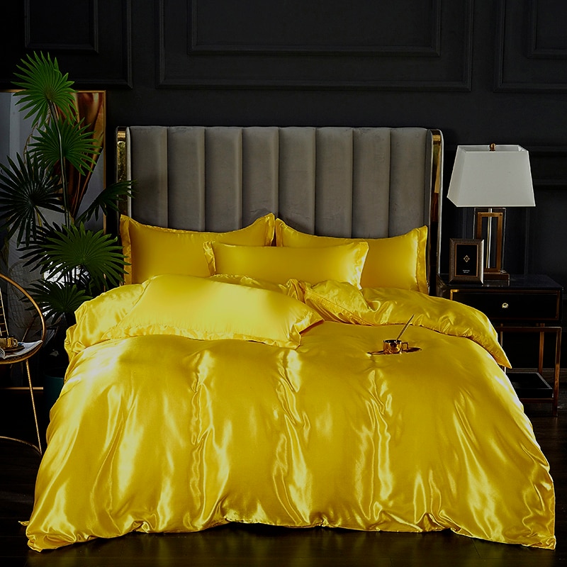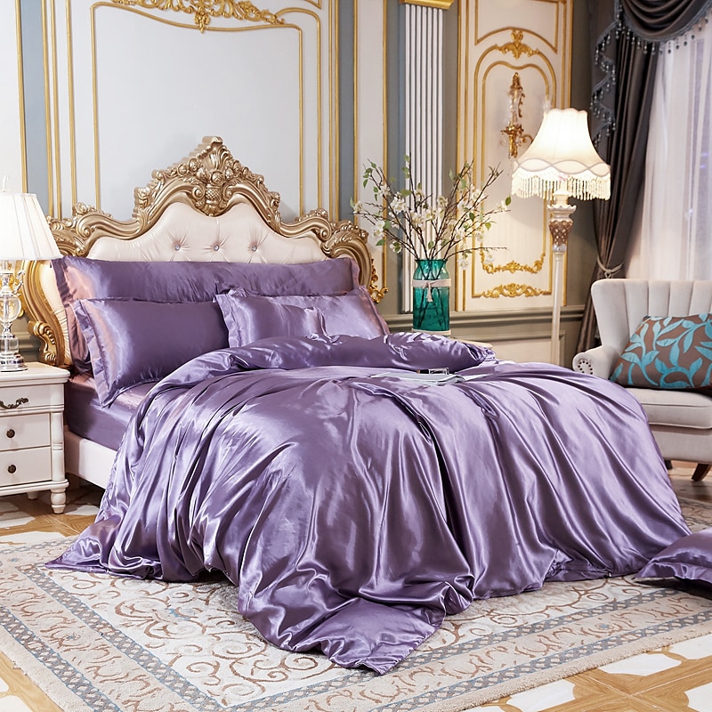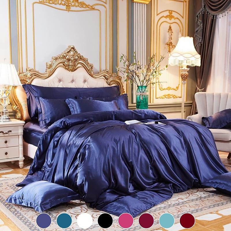 HOT ! Stain Silk Duvet Cover Bedding Sets Comforter Cover with 1 Duvet Cover or Coverlet,1Sheet,2 Pillowcases for Double/Queen/King(1 Pillowcase for Twin/Single)