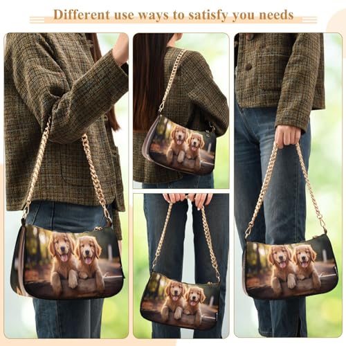 HOT ! Shoulder Bags for Women Golden Retriever Dogs Hobo Tote Handbag Small Clutch Purse with Zipper Closure