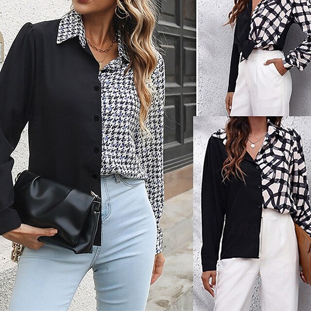 More information about Women's Shirt Plaid Daily Stylish Basic Long Sleeve Shirt Collar Regular Tops Work Daily Holiday Buttons Black Gray Spring Fall