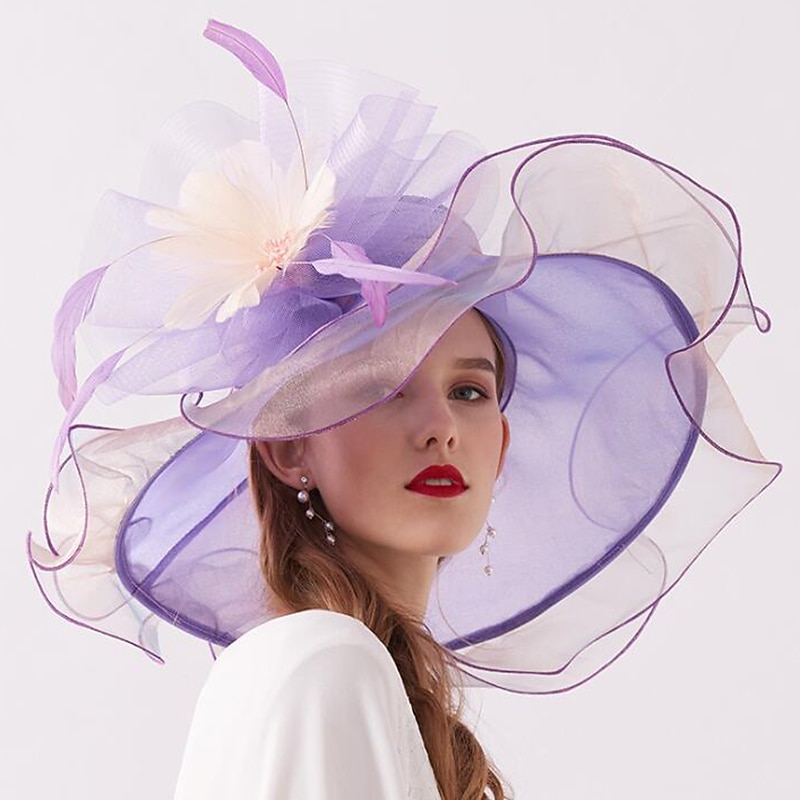 More information about Fascinators Hats Headwear Organza / Polyamide Bucket Hat Straw Hat Sun Hat Casual Holiday Melbourne Cup Cocktail Royal Astcot With Feather Appliques Headpiece Hats Race Day Dress