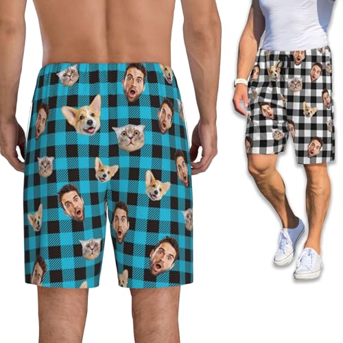 Personalized Pajamas Pants Plaid Custom Funny PJ Pant Design with Face Short Pajama 1