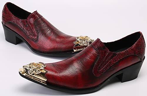 Santimon Men's Loafers Lion Metal Tip Pointed Toe Slip-On Fashion Casual Party Wedding Leather Shoes 7