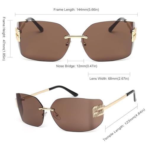 More information about Fashion Rimless Square Sunglasses for Women Men Oversized Trendy Wrap Around Big Frame Sun Glasses