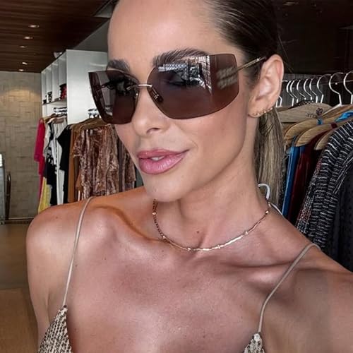 Fashion Rimless Square Sunglasses for Women Men Oversized Trendy Wrap Around Big Frame Sun Glasses 6