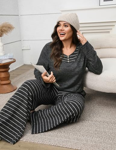 • Pajama Pants: The trousers of a 2-piece long-sleeved lounge set complete the look with complementary stripes and two functional side pockets, making them very suitable for keeping your phone, keys, or snacks within easy reach. No more compromising style for practicality.