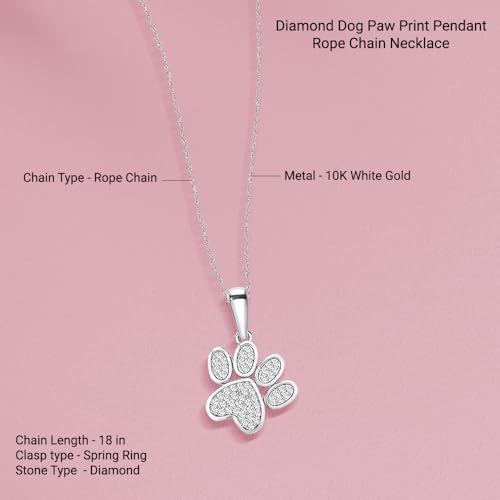HOT ! Diamond2Deal 10K Solid Gold Diamond Dog Paw Print Pendant Rope Chain Necklace 18inch (1/8Ct/ I2,H-I)