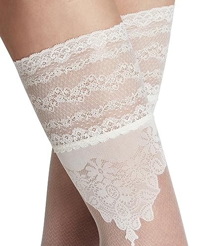 • Sensual and Versatile: 1 Pair of sheer stay up stockings that are 20 denier with an elegant wide lace band; Add style and confidence to any outfit work or play; Ideal for skirts or dresses