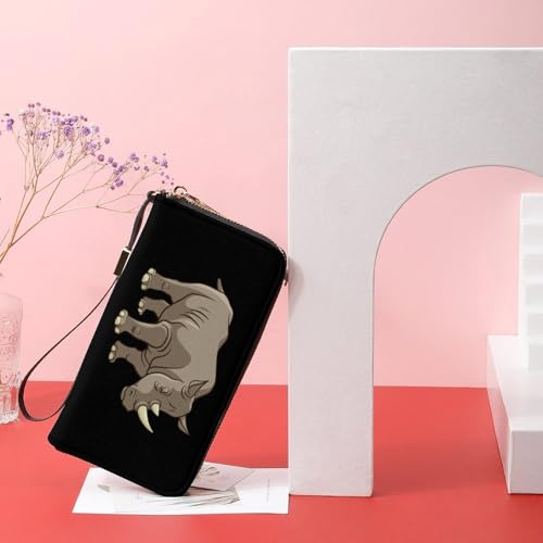 Rhino Vector Leather Wallet Fashion Bifold Purse Long Pouch with Wrist Strap for Men Women 1