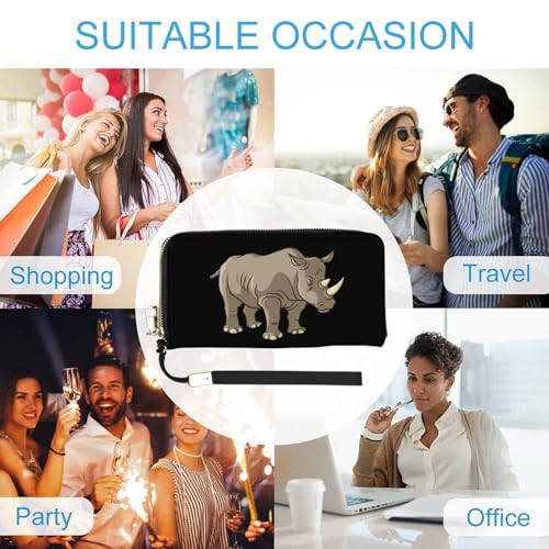 Rhino Vector Leather Wallet Fashion Bifold Purse Long Pouch with Wrist Strap for Men Women 6