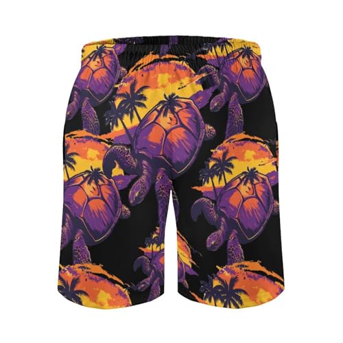 Hawaii Sea Turtle Palm Trees Men's Swim Trunks Board Shorts Beachshorts Swimsuits with Pockets Mesh Liner