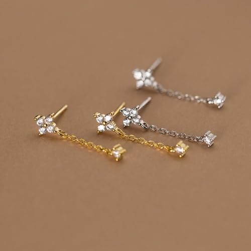 • [Design]: These stud chain tassel pierced earrings use four zircons to make flower-shaped stud earrings, simple, light and elegant, suitable for all face shapes and skin tones, and can be matched with any clothes. Perfect for any occasion.
