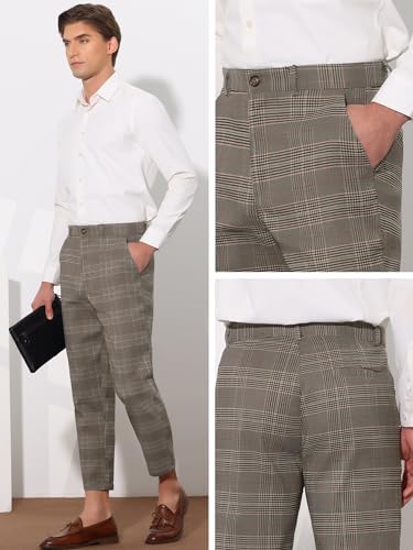 Lars Amadeus Plaid Dress Pants for Men's Flat Front Ankle Length Cropped Pants 4