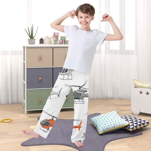 ZZXXB Helicopter Pattern Boys Long Pants Soft Trousers Elastic Waist Kids Lounge Bottoms with Pockets S-XL 1