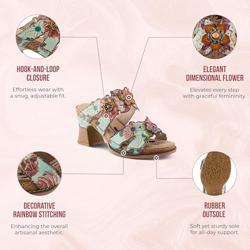 Spring Step L’Artiste Radiating Women's Sandal – Hand-Painted Floral Leather Slide with Cork Footbed - Adjustable Hook & Loop Strap, Microsuede Insole 6