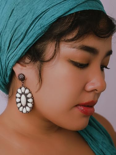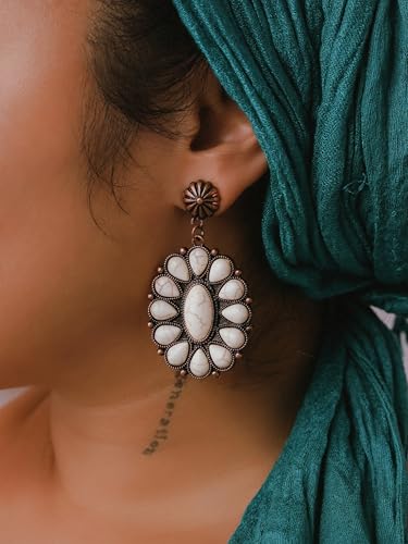 • FLORAL BOHO CHIC: These striking earrings feature a floral-inspired design with created white turquoise stones, perfect for adding a bohemian touch to any ensemble.