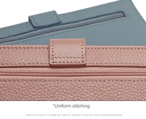 Genuine leather women's wallet with 6 card slots and leather ultra-thin long clip with independent coin pocket on the outside 7