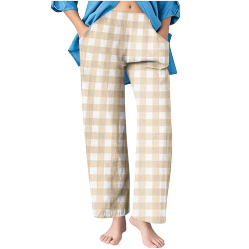 More information about Girls Plaid Summer Pants Loose Fit Casual Elastic Waist Wide Leg Workout Yoga Trousers with Pockets for Kids 4-14 Years