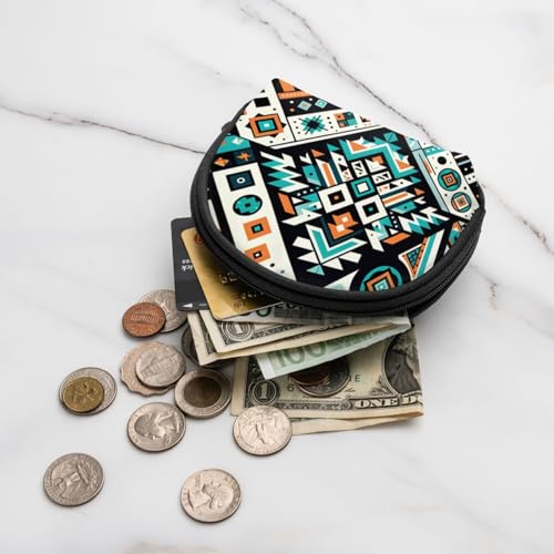 Portable Coin Purse Colorful-Navajo-Pattern-Aztec Mini Zippered Money Pouch Card Holder 1