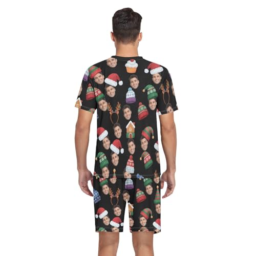 KLL Custom Face Christmas Colorful Hat Cupcake V Neck Sleepwear Men's Pajamas Short Sleeve Tops & Shorts 2 Piece 4