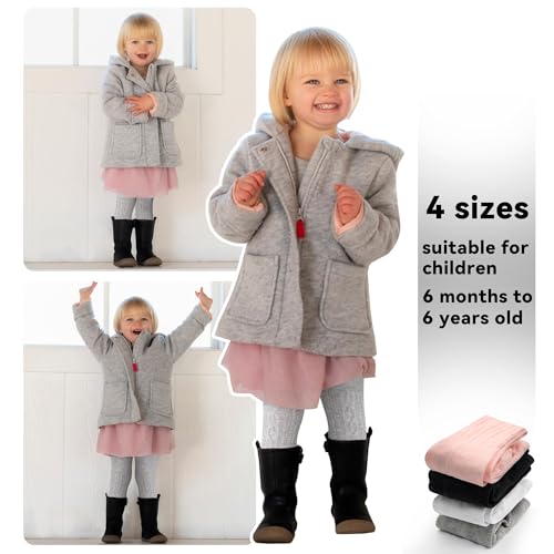 3 Pack Toddler Tights, Non Slip Baby Tights for Girl (6 months-6 years), Knit Cotton Pantyhose Black White Pink Grey 4