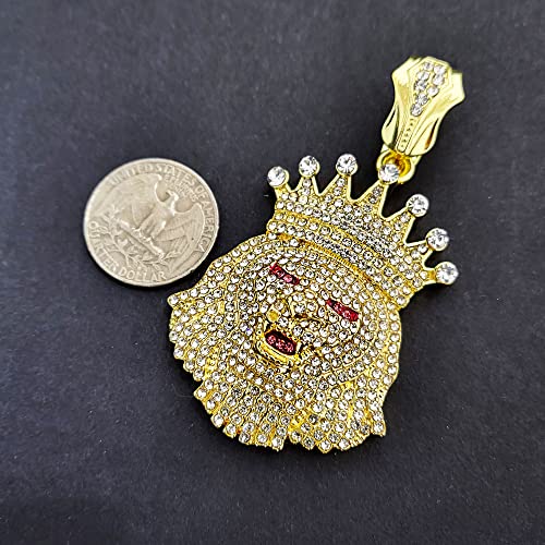 Iced Gold Plated Large Simulated Diamond King Crown Lion Bling Pendant & 13mm 16" 18" 20" 24" Cuban Chain Hip Hop Rapper Jewelry Necklace 1