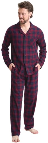 Fabric type: 100% CottonCare instructions: Machine WashOrigin: ImportedPREMIUM 100% COTTON FLANNEL: Relish the soft, warm, and cozy feel of high-quality cotton flannel. Ideal for cooler nights, our fabric ensures you stay comfortably warm without overheating.YARN-DYE WOVEN FABRIC: The yarn-dye woven process ensures lasting color and durability, providing a rich, vibrant look that maintains its quality wash after wash.CLASSIC BUTTON-DOWN DESIGN: The button-down shirt features a timeless, tailored look with a relaxed fit. Transition seamlessly from evening relaxation to a restful night's sleep in classic style.TAGLESS COMFORT: The tagless design ensures no scratchy tags, providing you with irritation-free comfort throughout the night.ULTIMATE COMFORT FIT: Thoughtfully designed for maximum comfort, the pajama pants feature an elastic waistband with a drawcord for a personalized fit. The button-thru fly adds convenience, while two deep side seam pockets allow you to hold your cell phone, remote control, and other essentials.ELEGANT DETAILING: Fine stitching and attention to detail elevate the look of this sleepwear set, making it as sophisticated as it is comfortable. The refined design ensures you look as good as you feel. Perfect for everyday use. first-class materials and excellent craftsmanship ensure long-lasting durability.