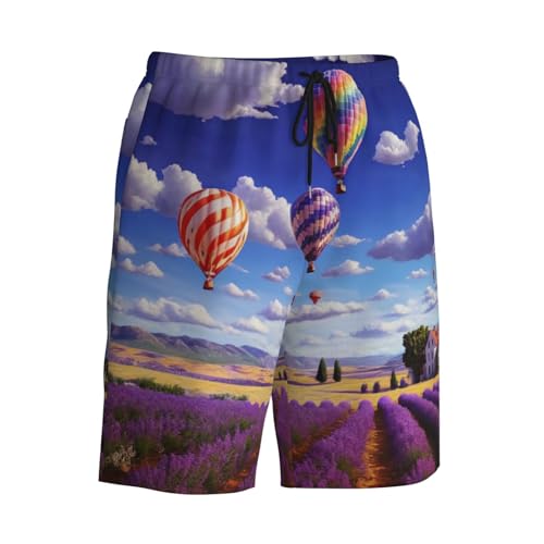 HOT ! Lavender Hot Air Balloon Print Men's Beach Pants Lightweight Quick-Dry Swim Pants with Mesh Lining for Men