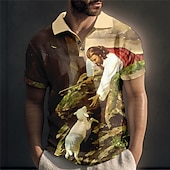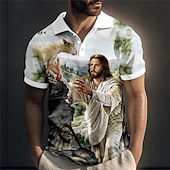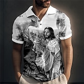 More information about Men's Jesus Christian Polo Shirts Golf Shirt Short Sleeve Polo Shirts Collared Shirts Vintage Casual Vacation Wear Festival Wear Party Outfits Buttons 3D Print Yellow Blue Green