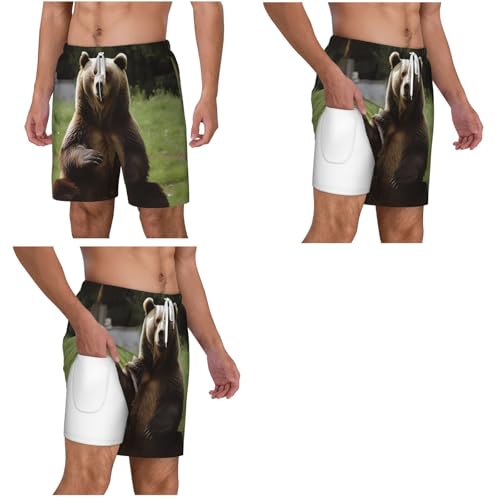 Men's Swim Trunks Quick Dry Board Shorts Hi Bear Sit on The Lawn Beach Shorts with Pocket Bathing Suits for Men 5