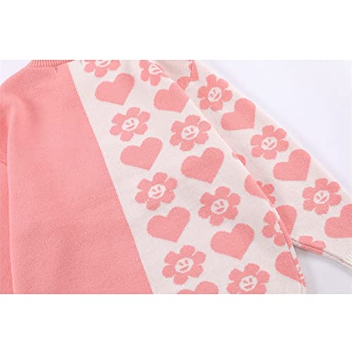XMAIYIF (Wool) Sweater Patchwork Heart Letter Pattern Sweater Men Pullover Couple Sweaters Sweater(Pink,M) 5
