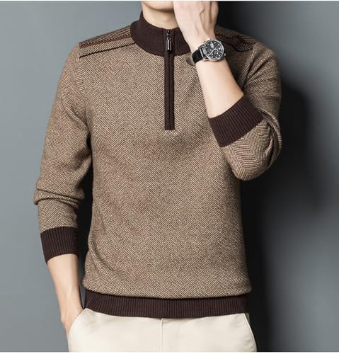 Mens Quarter Zip Pullover Sweater Wool Blend Mock Neck Long Sleeve Casual Knitted Sweaters