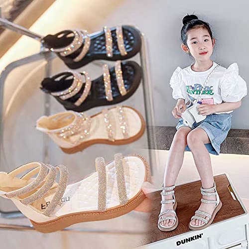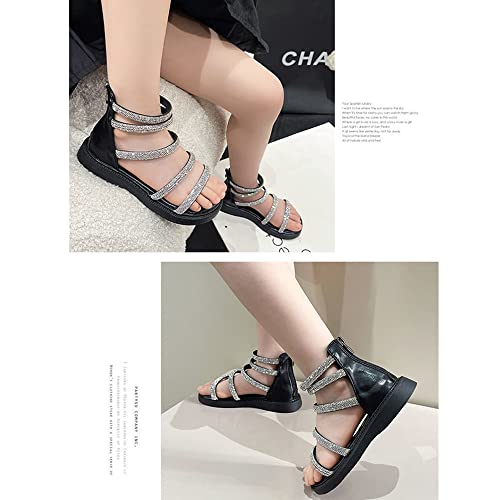 Toddler Little Girls Breathable Summer Zipper Glitter Rhinestone Open Toe Gladiator Strap Sandals Fashion Summer Boots