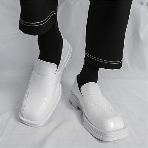 HOT ! Men's Two Tone Patent Leather Slip On Dress Loafers Square Toe Non-Slip Low Top Shoes for Business Work Daily Formal Party