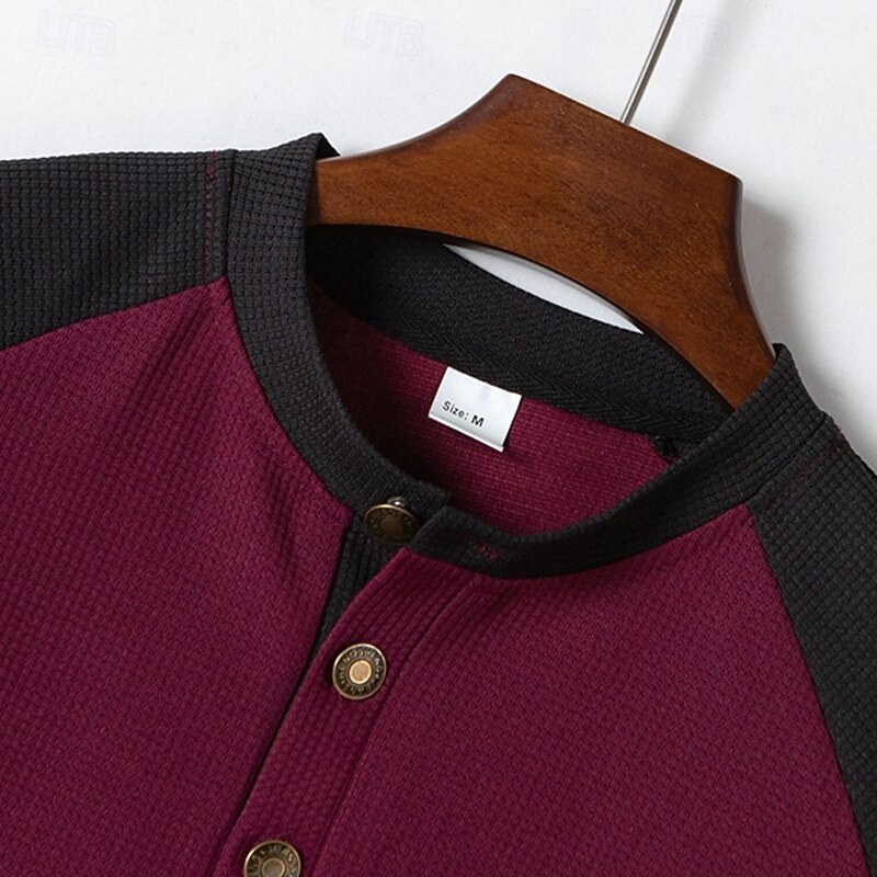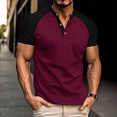 More information about Men's Button T Shirt T Shirt Waffle Henley Shirt Henley Shirt Short Sleeve Henley Summer Color Block Fashion Designer Basic Patchwork Vacation Street Going out Wine Dark Green Khaki Top Tee for Men