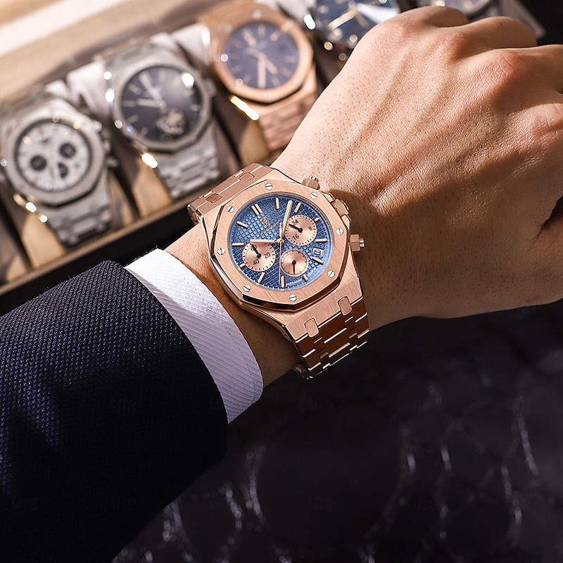 Men Mechanical Watch Quartz Watch Retro Vintage Wristwatch Luminous LED Back Light Chronograph Waterproof Stainless Steel Watch 1