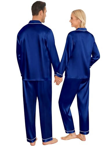 SWOMOG Couples Pajamas Sets Silk Satin Long Sleeve Sleepwear Button Down Loungewear Pjs Set iconic Pajama S-XXL