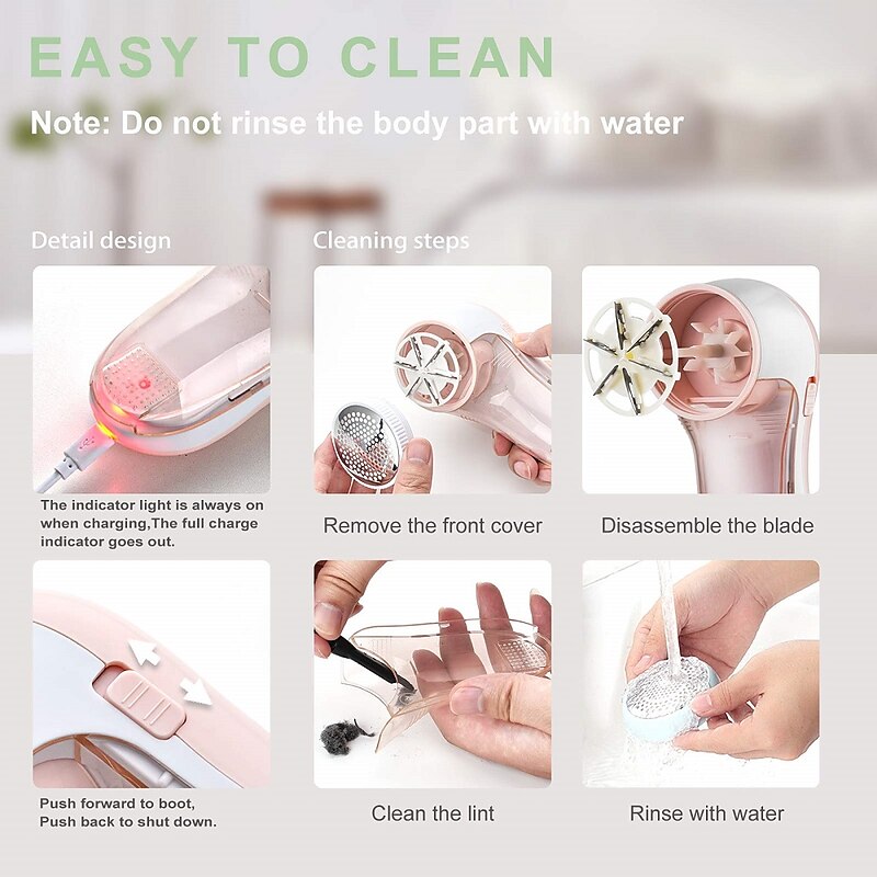 Fabric Shaver and Lint Remover with Cleaning Brush and Replaceable Stainless Steel Blades Sweater Epilator USB Charger to Remove Lint from Clothes 6