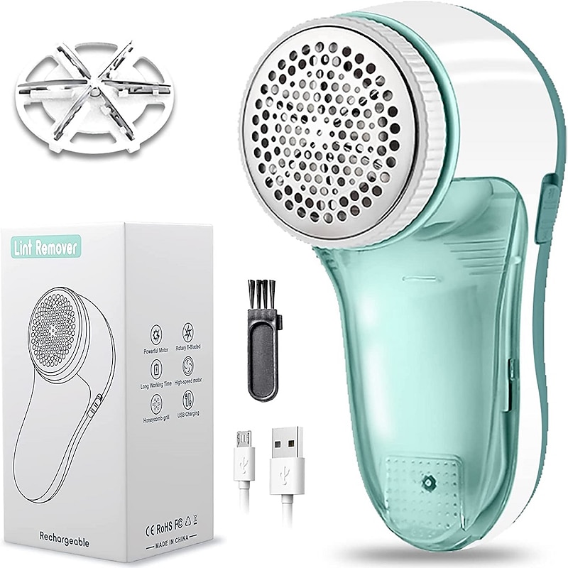 Highlights - Enjoy faster and thorough hair removal with our electric fabric shaver, featuring 6 sharp rotating blades and an expanded surface. - Don't settle for less - our fabric shaver comes with an extra spare blade, compared to other hair removers with only 3 blades. - With just a few quick steps, fluff and embedded fabric can be easily removed in seconds, thanks to our fabric shaver's powerful cutting ability. - Benefit from our high-quality lithium battery with USB charging design, charging in just 6 hours and providing up to 3 hours of use time. - Take advantage of our dual protection design, which includes a honeycomb demister and safety mechanism to protect your clothes and hands. - Cleaning and maintenance are made easy with our fabric shaver's large capacity transparent container and ergonomic handle for a comfortable grip. - Get more than just a hair remover - our package includes a powerful linter, extra spare blade, cleaning brush, and USB charging cable. Perfect for home use or travel.