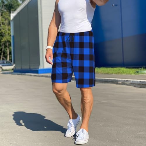 HOT ! Buffalo Plaid Blue Black Print Men’s Sleep Shorts Bottoms Soft Comfy Pajama Wear Pants With Drawstring Pockets