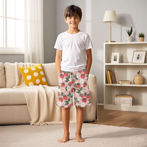 ALAZA Strawberry Floral Blossom Pajama Shorts Sleep Shorts Pant Lounge Pajama Bottoms Elastic Waist with Pockets 1