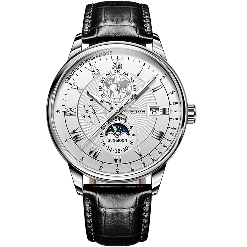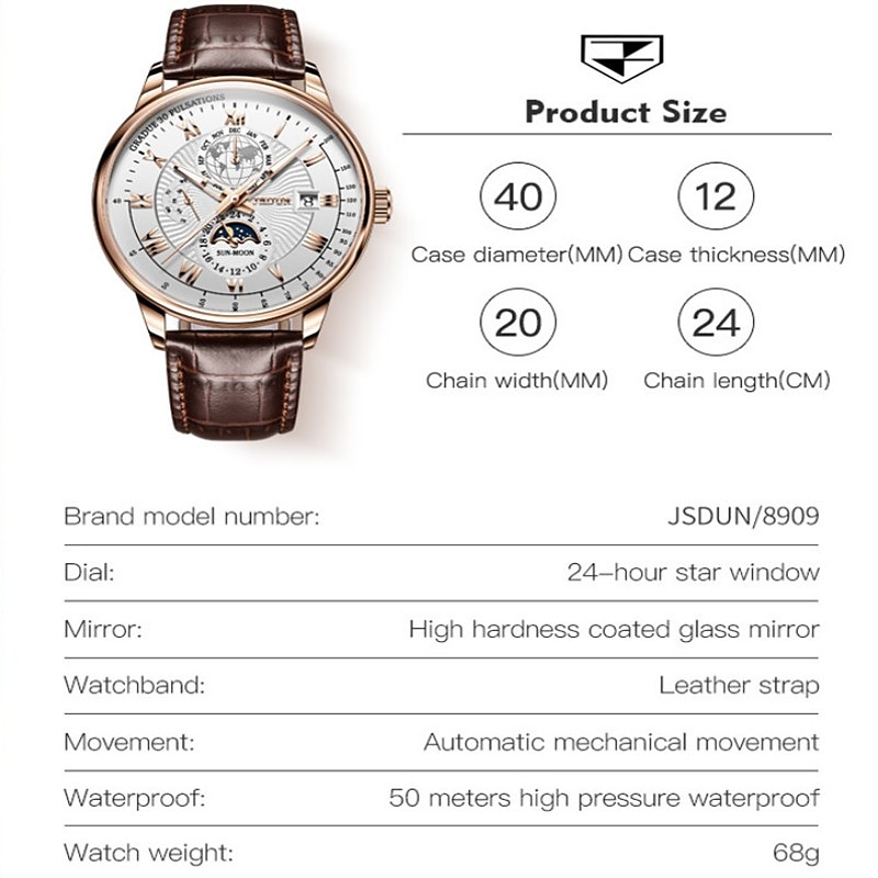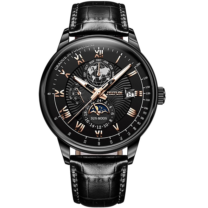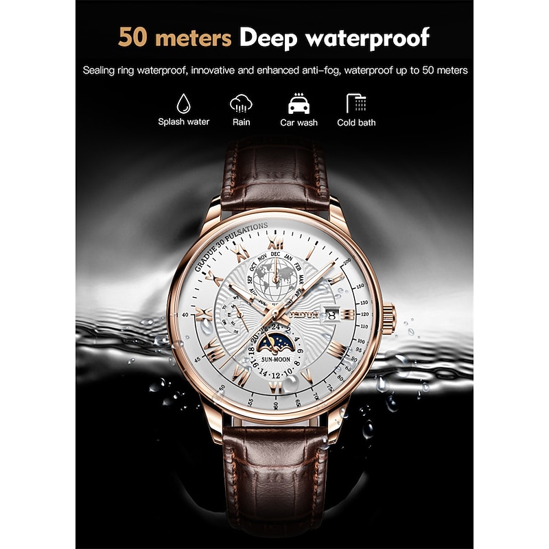 More information about Mechanical Watch for Men Business Luxury Analog Wristwatch CalendarAutomatic Self-winding Moon Phase Waterproof Noctilucent Genuine Leather Watch Gift