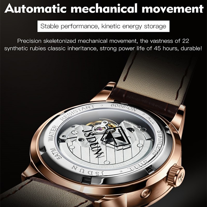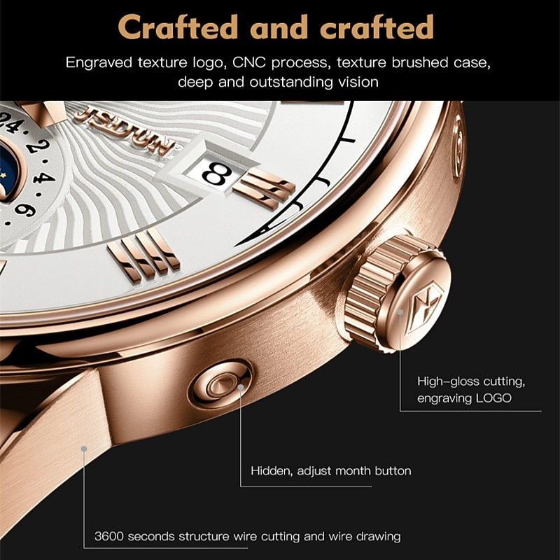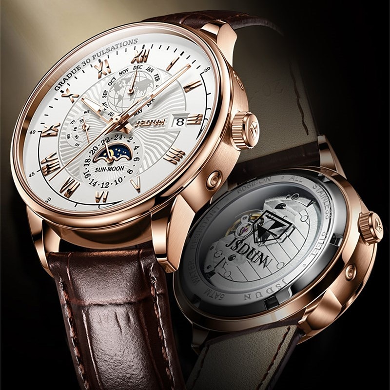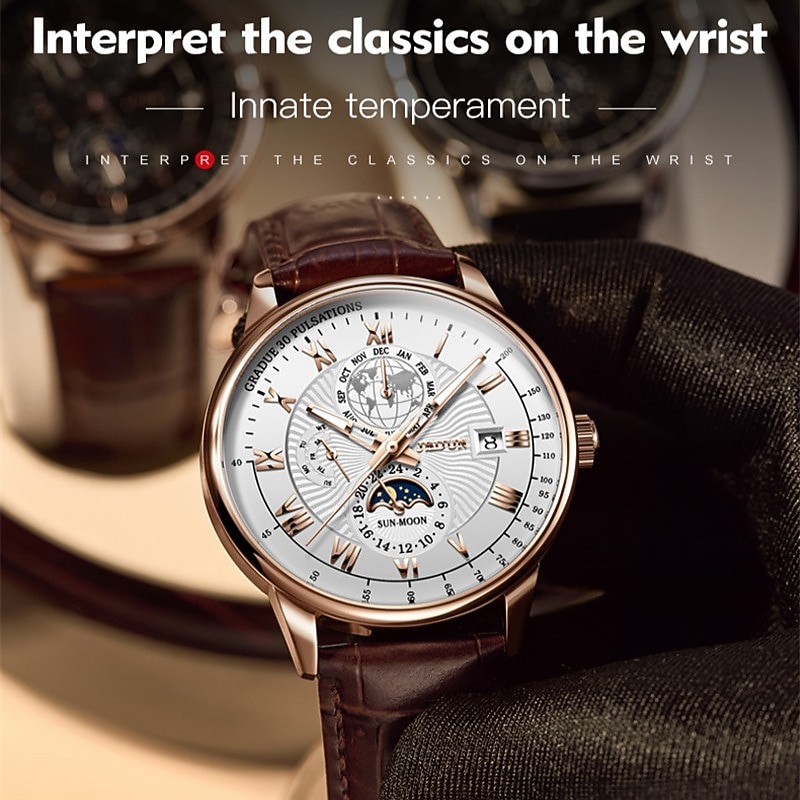 Mechanical Watch for Men Business Luxury Analog Wristwatch CalendarAutomatic Self-winding Moon Phase Waterproof Noctilucent Genuine Leather Watch Gift 21