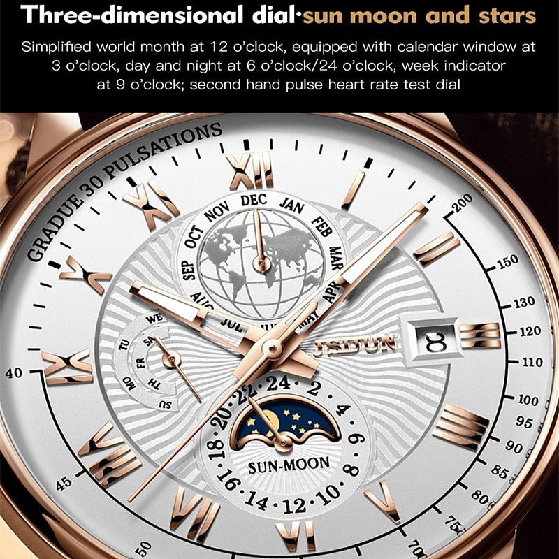 Mechanical Watch for Men Business Luxury Analog Wristwatch CalendarAutomatic Self-winding Moon Phase Waterproof Noctilucent Genuine Leather Watch Gift 15