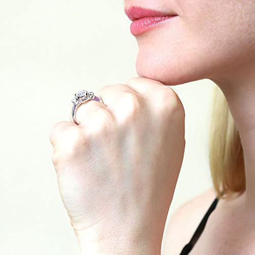 • 925 STERLING SILVER: This 3-stone wedding engagement ring is crafted with fine solid sterling silver, stamped 925. Rhodium plated for enhanced durability and tarnish resistance.