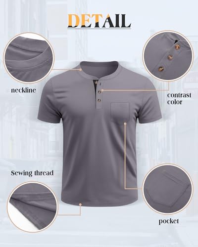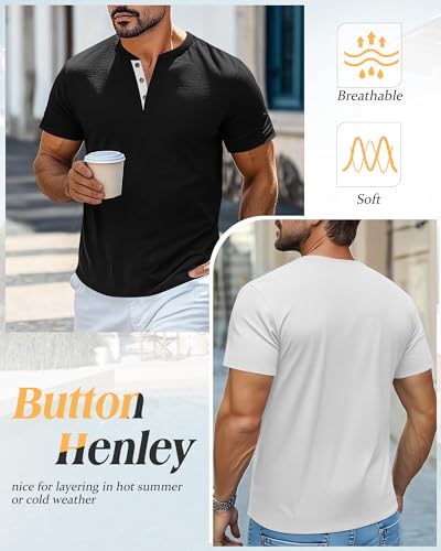 • Henley Design: our classic Henley tops for men, with 3 buttons, curved hem, and adjustable neckline to v neck or round neck, easy to put on and take off, highlighting muscle lines and showing masculine charm