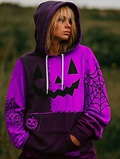 More information about Halloween Women's Pullover Hoodie Sweatshirt Spider Web Graphic Fashion Casual Long Sleeve Hooded Regular Tops Street Dailywear Casual Drawstring Pocket Print Blue Purple Orange Green Fall Winter