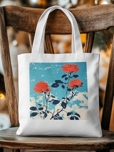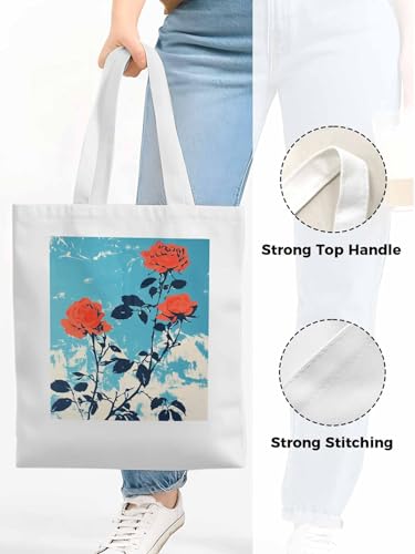 HOT ! Red Botanical Floral Herbs Canvas Tote Bag, Aesthetic Canvas Tote Handbags for Women Shoulder Bag