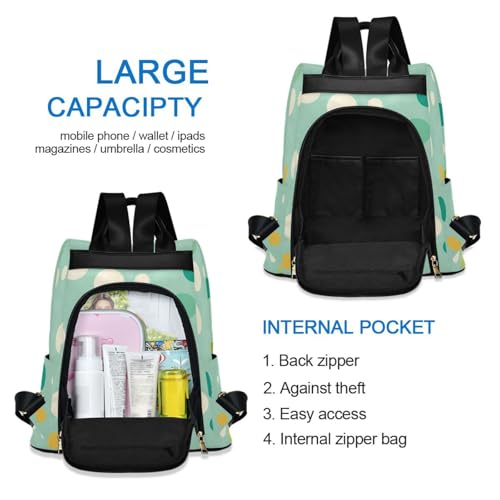 KLL contemporary White Rounds Dots Teal Fashion backpacks for women Anti-theft backpack for women college for Travel, Work, Everyday with Pom-pom keychain